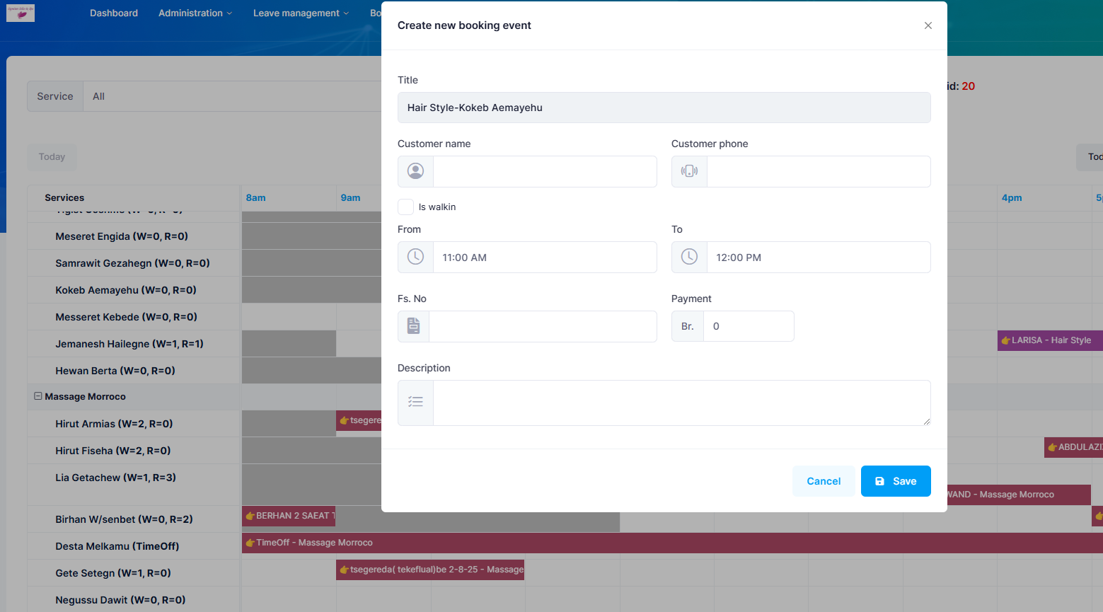 Customer booking system for Salon & Spa.