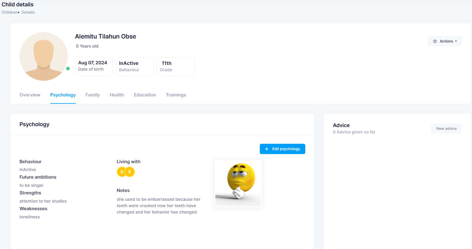 All In One Child management system for a local NGO working on orphange children