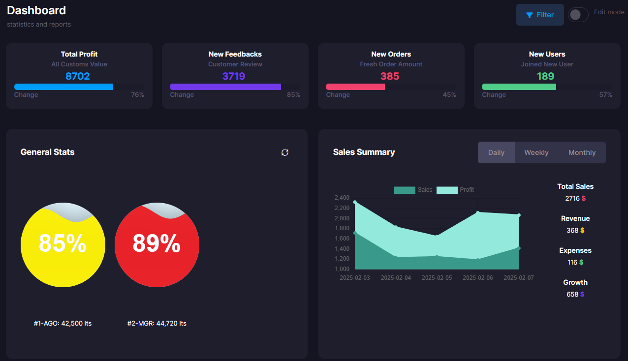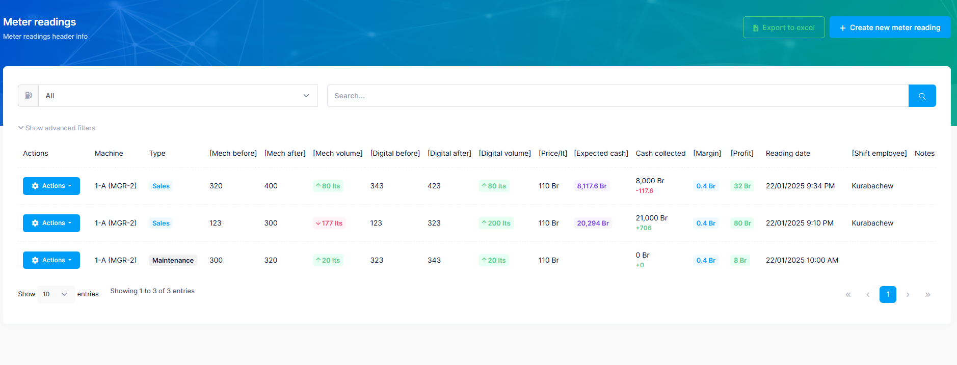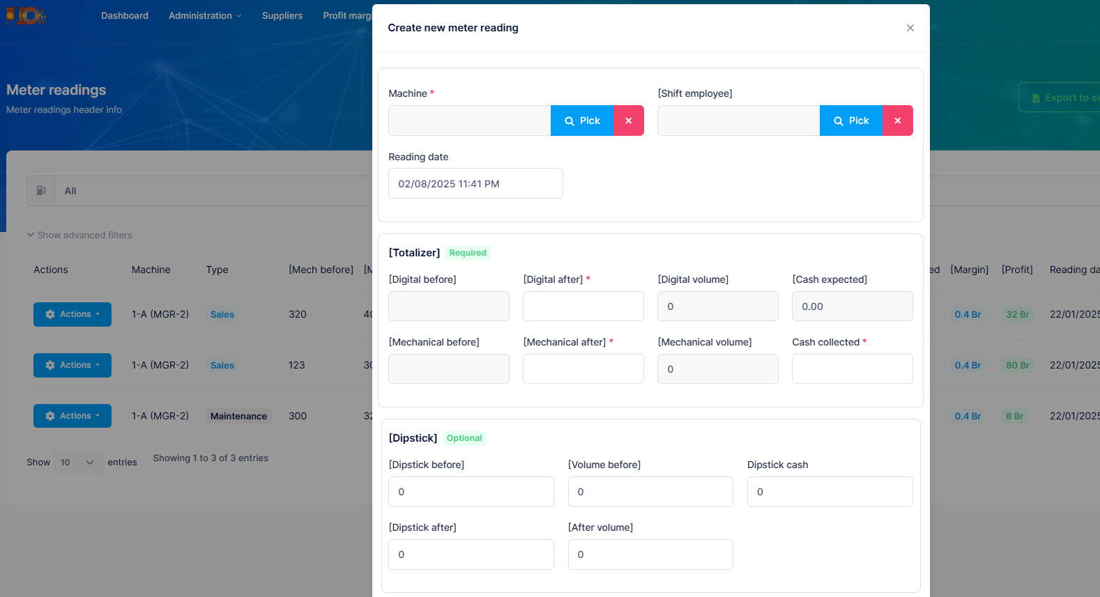 The system should be Multi-tenat or Software as a service. Every operation starting from fuel suppliers, products, margins, machines and under ground tanks management has been simplified and every sales is recorded. Also, Electro-Mechanical operations such as machine maintenances are also recorded. All this will be accounted on reporting and it helps the station owner to manage his operations not only in one station but different branches.